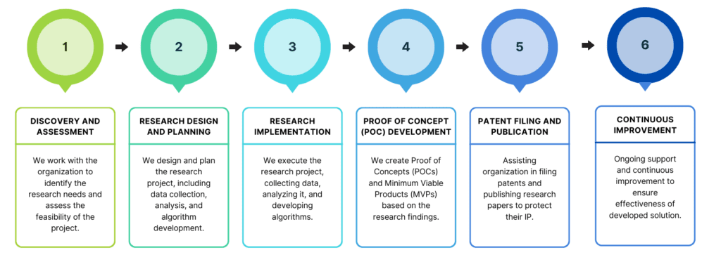Access PhD-driven AI expertise, build prototypes and MVPs, secure patents, and publish research—faster, smarter, and without the cost of an internal lab.